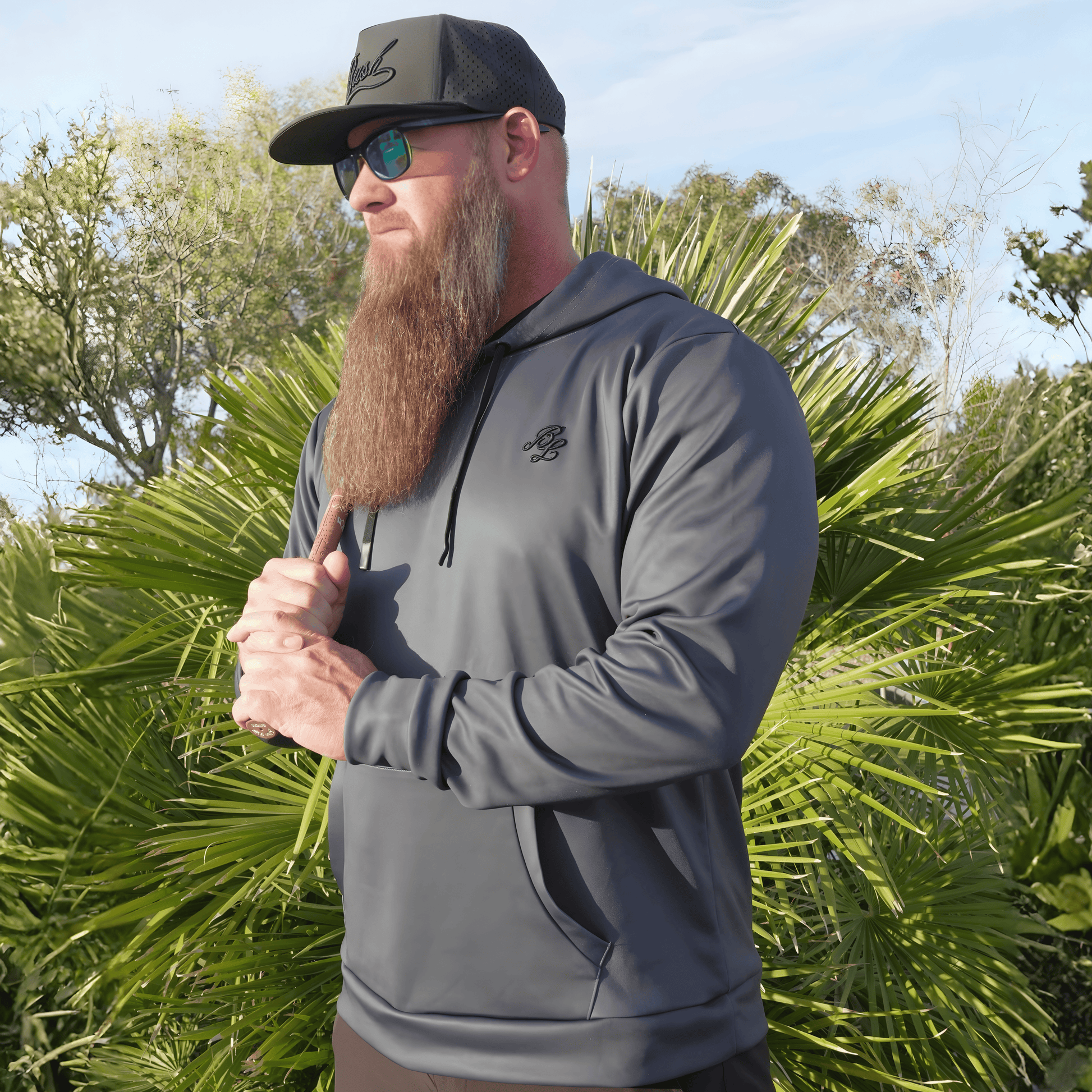 The Gun Metal Grey Bush League Hoodie is crafted from a performance poly spandex blend that stretches and moves with you, making it ideal for golf or any day you’re on the go. Soft, breathable, and ready for action, it’s made to keep up.