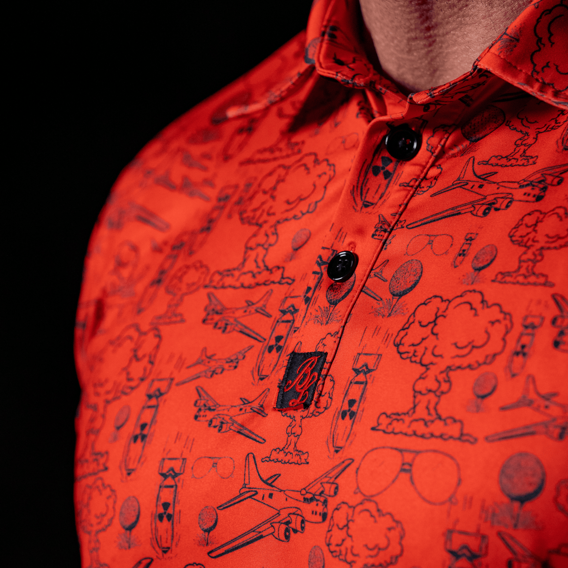 Introducing the Dropping Bombs Golf Polo in Red and Black, designed for those who know that hitting long drives is an art form! Crafted from 92% polyester and 8% spandex, this polo provides the perfect balance of comfort and flexibility, allowing you to unleash your inner powerhouse on the course. The lightweight, moisture-wicking fabric keeps you cool while you’re sending balls into orbit—because nothing says “I’m here to play” like out driving your buddies. With a cheeky nod to your bombing skills, this polo is all about style and swagger. Get ready to turn heads and crush it on the fairway!